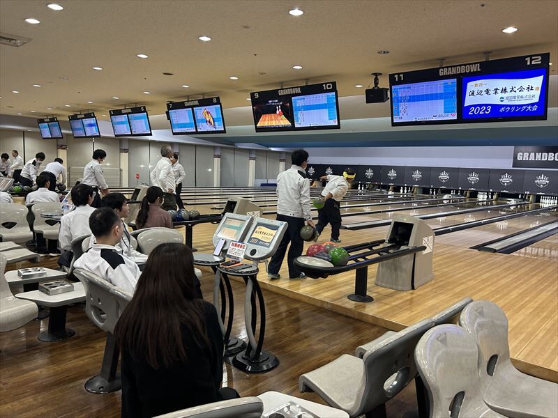 会社のボウリング大会が初めての社員も、ベテラン社員も久しぶりのボウリングにああだこうだと話しながら楽しんでいました。