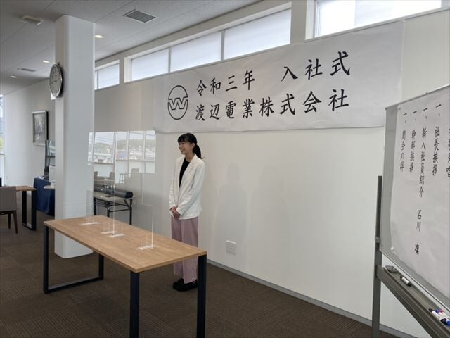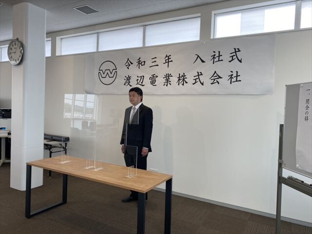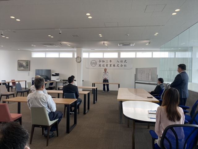 社長・先輩方からのお祝い挨拶、また新入社員自己紹介もしていただき、緊張感と笑顔の入社式でした。