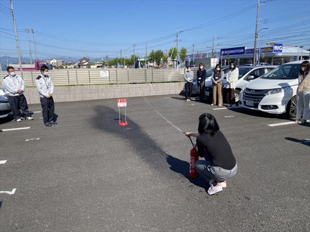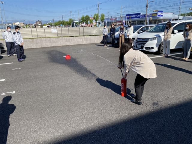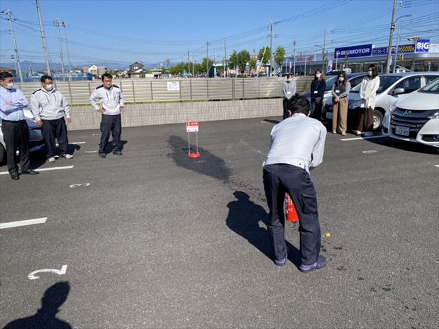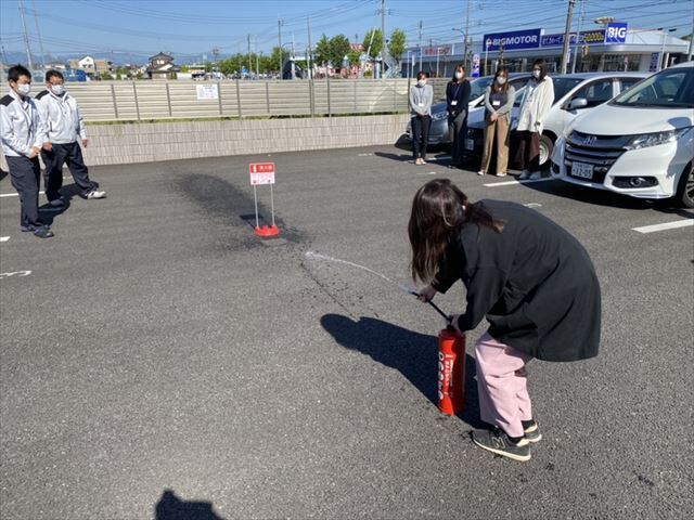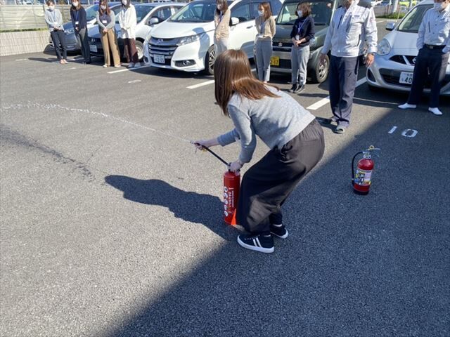 日頃、内勤業務をしている社員を中心に災害時の行動の取り方、消火器の使い方の説明を受けました。
